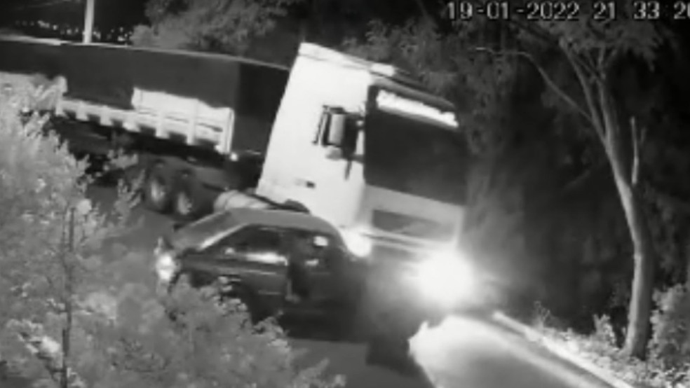 Uma jovem de 25 anos ficou ferida após o carro onde ela estava ser atingido por um caminhão em Ourinhos (SP). O acidente ocorreu na última quarta-feira (19) e foi registrado por uma câmera de segurança.
