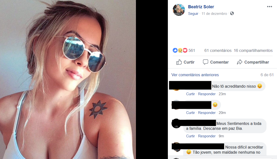 Segundo informações do boletim de ocorrência, Beatriz Soler da Luz foi levada ao hospital “com dores de cabeça e vômitos, mas antes mesmo de haver diagnóstico a respeito veio a óbito”.
