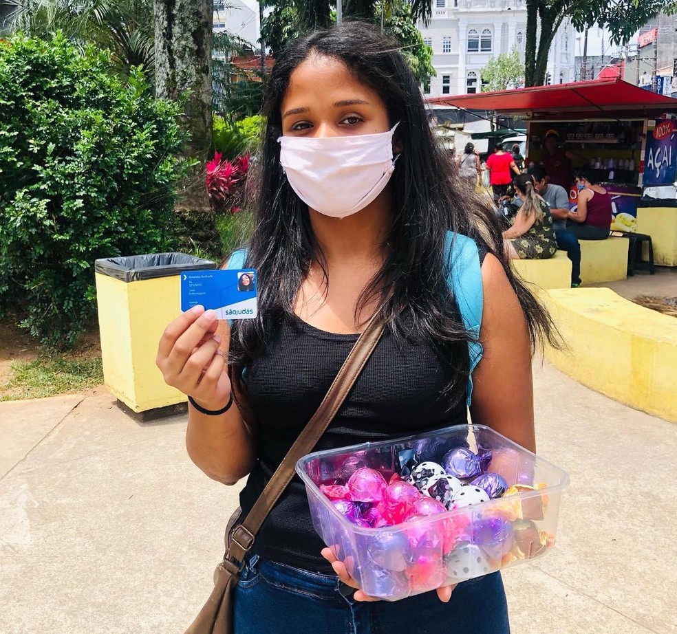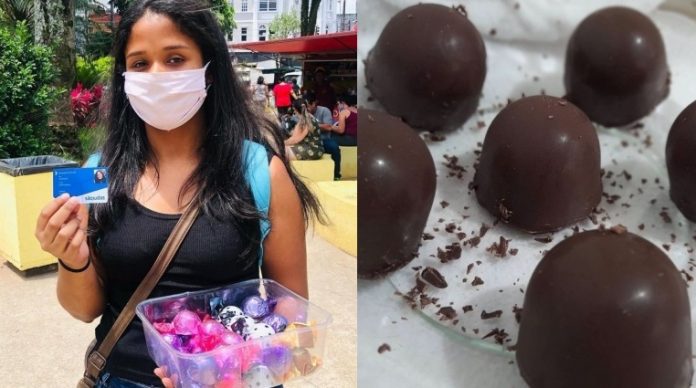 A estudante de enfermagem Amanda Beatriz Oliveira Andrade, de 21 anos, começou a vender trufas nas ruas de São Vicente, no litoral de São Paulo, um ano antes de dar início ao curso que sempre sonhou, com o objetivo de arrecadar dinheiro para custear os estudos. Ela contou que aprendeu a fazer os doces pela internet, e que os vendia na época do Ensino Médio. “Não sabia fazer direito, e era horrível, mas com o tempo, peguei habilidade, fiquei melhor, e agora até crio sabores”.