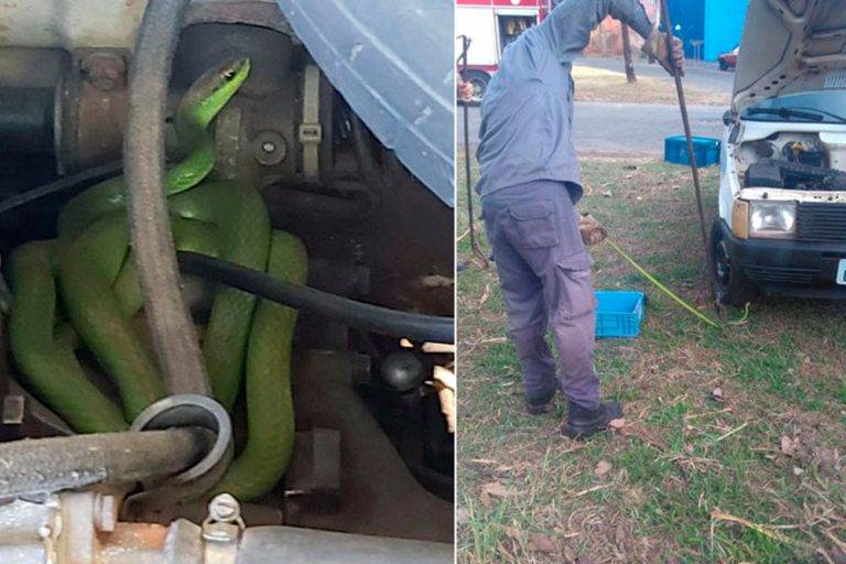 No início, o jovem desconfiou, mas a informação também foi confirmada por outras pessoas. No momento em que ele abriu o capô do carro, se surpreendeu – “Na hora que eu vi eu levei um susto e pensei, como eu vou tirar ela daí” – contou Wesley.