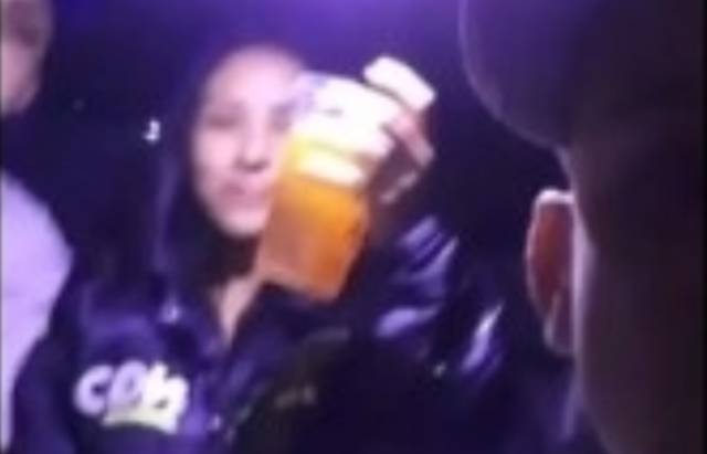 Em outro trecho, é possível ver a única sobrevivente do acidente, Letícia Roque, de 21 anos. Ela está segurando um copo e faz um gesto como um brinde para a câmera.