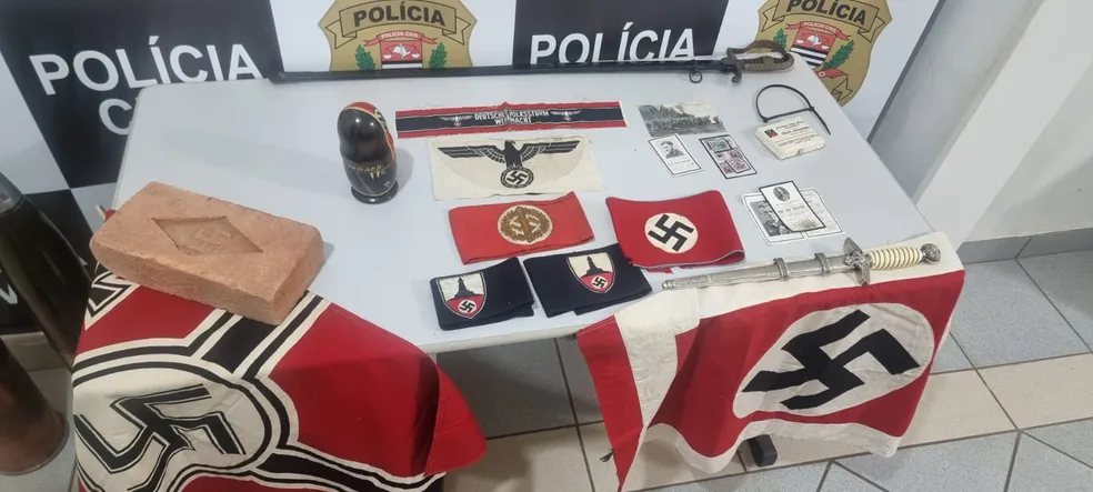 “Pra polícia, tudo chamou a atenção. Todos os artigos nazistas, talheres, insígnias, uniformes, todos eles com a cruz suástica, o que a nossa legislação proíbe quando há fins de divulgação do nazismo”, completa.