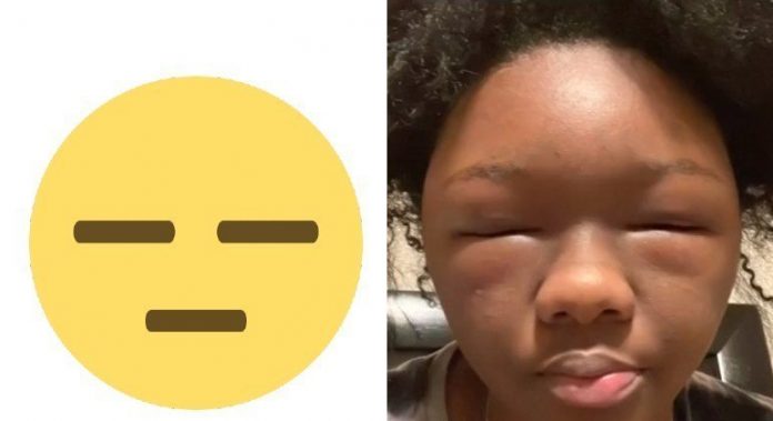 A jovem Shanika McNeil, 29, desenvolveu uma reação alérgica brutal à tintura que aplicou no cabelo. O resultado foi um rosto completamente inchado, comparado por ela mesma a “um emoji”.