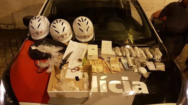 Os policiais então os acompanharam ao endereço, no mesmo bairro, onde foram apreendidas 216 embalagens de maconha, 22 porções de cocaína, 70 gramas de cocaína desembaladas, R$ 801,95 em espécie, e outros objetos para embalar drogas e anotações da contabilidade do tráfico.