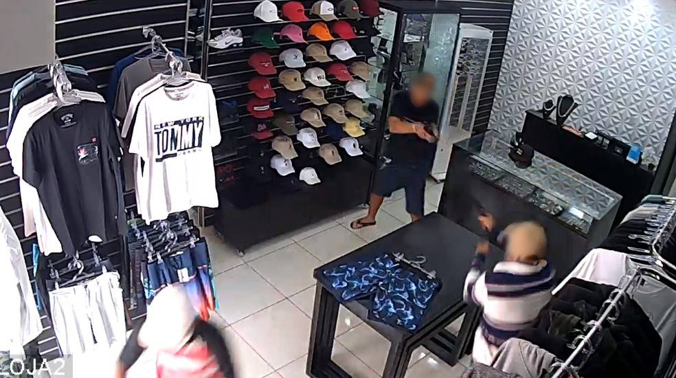 As câmeras de segurança do local registraram o momento em que um dos suspeitos sacou a arma e apontou para o dono da loja, que também pegou uma revólver da cintura. Houve troca de tiros e o trio foi baleado.