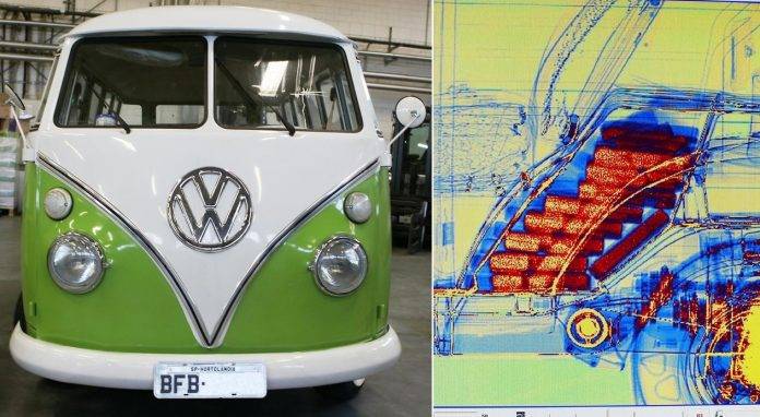 Os tabletes estavam em um compartimento selado, embaixo do banco traseiro do veículo. As imagens registradas pelo equipamento indicaram a existência do entorpecente. Foi necessário utilizar uma serra para abrir um buraco na lataria interna da Kombi, que em uma vistoria prévia não indicava qualquer tipo de violação.