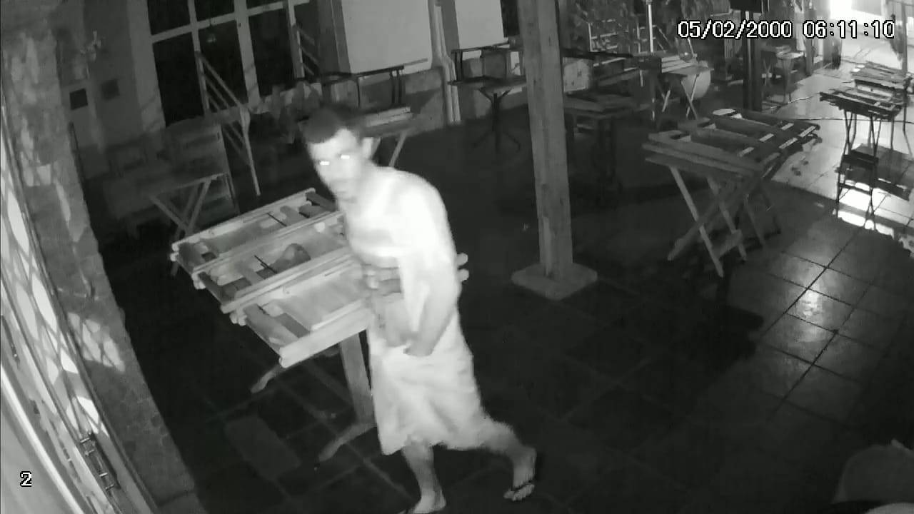 Ao sair da Viena Ótica, ele foi até um restaurante na Rua Júlio Mesquita, e através de arrombamento de um vitrô, o indivíduo teve acesso ao interior do estabelecimento, porém não levou nada, só que deixou um rastro de destruição que foi flagrada por câmeras de segurança.