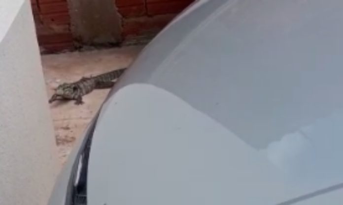 Um lagarto de cerca de um metro foi encontrado no quintal de uma casa, localizada no Jardim Vida Nova Araras (Pacaembú), em Araras (SP), na manhã desta segunda-feira (19) de dezembro.