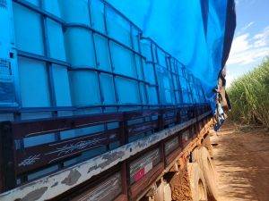 No local foi encontrada uma mangueira junto ao caminhão utilizada para furtar combustível. Na carroceria do veículo, cobertos por lona, havia 14 recipientes com capacidade de mil litros de armazenamento, sendo que em um deles estava com 200 litros de gasolina retirada do duto.