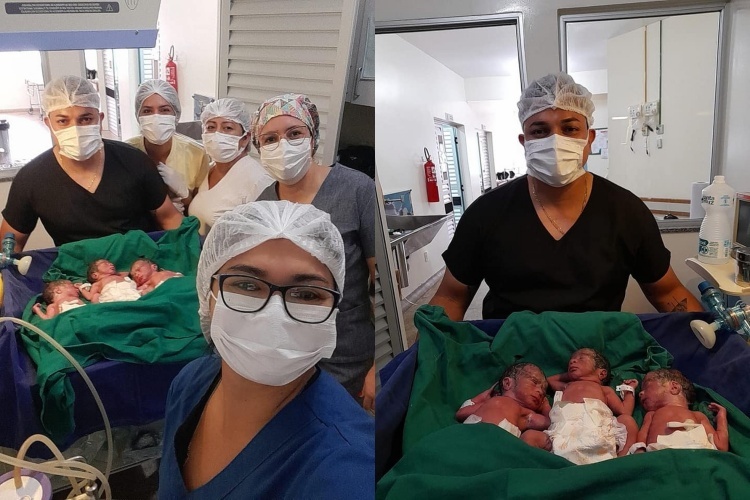 Um terceiro bebê foi descoberto pelos médicos na hora do parto. O médico Alexandre Ribeiro informou que esse foi o primeiro nascimento de trigêmeos na cidade em, pelo menos, 35 anos. “Eu nunca imaginava que teria um terceiro. Na hora que o doutor estava tirando eles, eu até me assustei quando ele falou: ‘Olha, tem um terceiro também’. Ele falou e eu levantei minha cabeça. Ele falou: ‘Não, não pode levantar’. Eu me levantei para ver se era verdade“, lembrou Enedina.