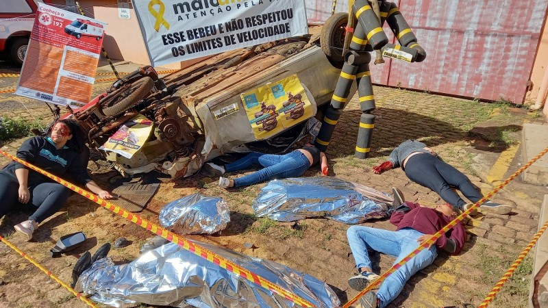 A ação fez parte do “Maio Amarelo” que tem como tema “No trânsito, escolha a vida”. “A campanha tem objetivo de conscientizar a população, pelo cenário que montamos aqui, para que as pessoas tenham noção que, às vezes, uma simples ação enquanto dirige pode causar um acidente muito grave”, explica o comandante do Posto de Bombeiros de Araras, Tenente Guilherme.