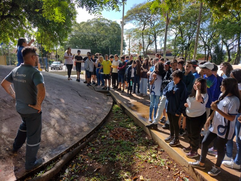 Na última quinta-feira (24), os alunos dos 9ºs anos da E.E. Professor Vicente Ferreira dos Santos visitaram a Estação de Tratamento de Água (ETA) do Saema. Cerca de 60 estudantes, mais professores, conheceram todos os processos de captação e tratamento da água por meio do projeto Educação Ambiental.