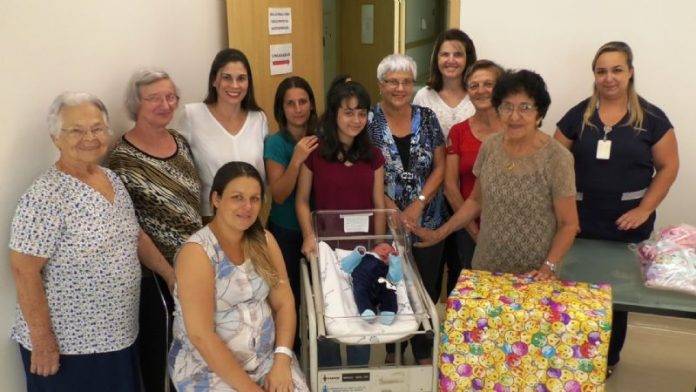 A ação faz parte da Campanha “Meu Kit Bebê”, realizada em parceria com os grupos da 3ª Idade, os quais arrecadam enxovais e fraldas para serem entregues às mães que dão à luz pelo SUS.