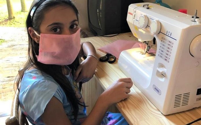 Além de doar os R$ 100 que ganhou, Liz também pôs a mão na massa e ajudou a avó a costurar 50 máscaras. A pequena já sabia costurar graças às aulas que faz desde os 7 anos.