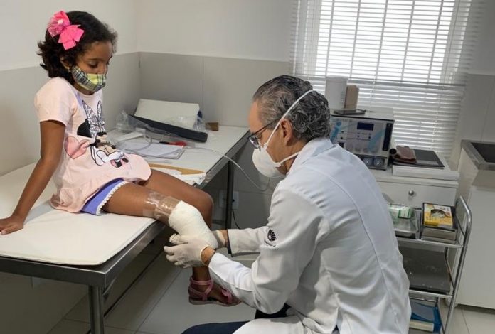 Depois de um cochilo, foi acordada com a prótese pronta, apenas para os últimos ajustes antes de voltar para casa com o tão sonhado presente – orgulhosa, já vestiu-a com a sandália da personagem favorita. “Agora eu posso brincar como eu quiser, andar de bicicleta. Eu vou sair correndo”, vibrou a menina.