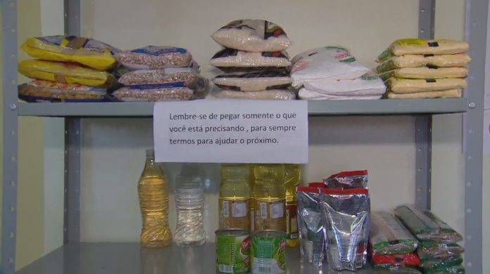 Os alimentos ficam dispostos em uma prateleira na unidade, assim como em uma mercearia e qualquer pessoa que vá receber atendimento no local pode pegar algum item que esteja precisando.