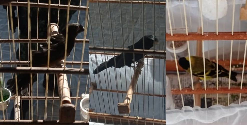 Com a chegada da equipe na residência do bairro Jardim Alto da Colina, foi constatada a veracidade dos fatos apontados, no tocante à existência de três aves da fauna nativa brasileira mantidas em cativeiro sem licença do órgão ambiental competente, sendo dois bicudos (Oryzoborus maximiliani) e um pintassilgo baiano (Carduelis yarellii), todos mantidos em gaiolas individuais, limpas, com água e alimentação disponíveis, sem sinais de submissão a maus tratos.