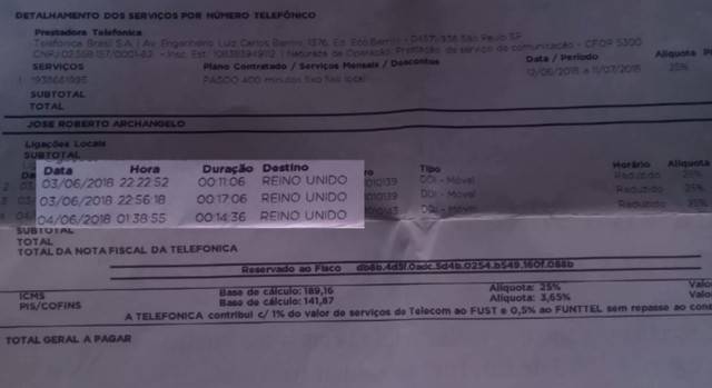 Na conta da aposentada Lúcia Maria foram cobradas três ligações, uma delas feita durante a madrugada. “É a hora que estou dormindo, não falo inglês, não tenho parentes lá, jamais faria uma ligação dela”, afirmou.