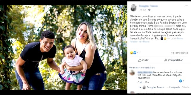 Amigos e familiares publicaram mensagens no perfil das vítimas no Facebook. A maioria chocada com a morte de Maurício Moura, de 28 anos, Bruna Soares Moura, de 26 e da filha deles, de 1 ano, que estavam visitando familiares no estado de Alagoas, segundo informou uma parente. “Não tem como dizer e expressar como é perder alguém. Eu sei que Deus sabe o que faz e vai confortar nossos corações”, postou uma mulher na página.