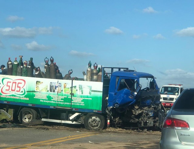 Casal e a filha de 1 ano morreram após baterem de frente com um caminhão carregado com cilindros de oxigênio.