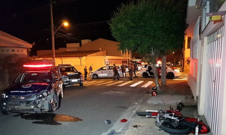 Uma motocicleta colidiu com uma viatura da Guarda Civil Municipal na noite de sábado (9), entre as ruas Joaquim Nabuco e Carlos de Campos, no centro de Salto (SP). De acordo com a Polícia Militar, o motociclista desobedeceu a uma ordem de parada dos policiais, dando início a um acompanhamento. Durante a perseguição, foi registrado o acidente.
