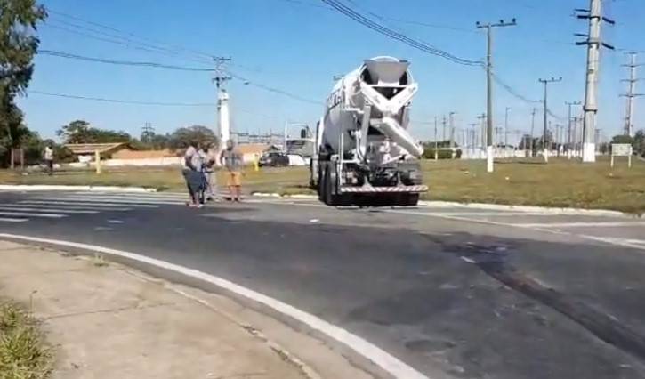 Ele teve os membros inferiores prensados por uma das rodas da betoneira que estava carregada com aproximadamente 24 toneladas de concreto para construção civil.