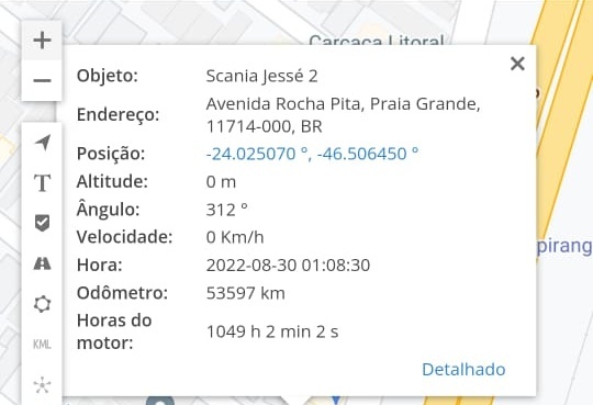 Um motorista de 48 anos morador em Araras (SP), foi assaltado na noite de segunda-feira (29), na cidade de Santos (SP). Criminosos levaram seu caminhão SCANIA carregado com adubo. A útima atualização do rastreamento registrou que o veículo estava na região da Avenida Rocha Pita, em Praia Grande (SP).