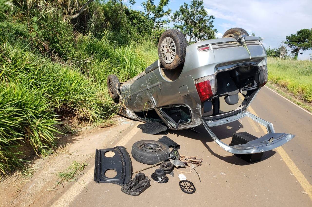 A Polícia Militar e o Corpo de Bombeiros também estiveram no local para registrar a ocorrência de desvirar o automóvel.