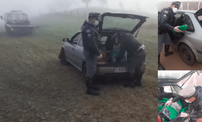 Em abordagem, policiais acharam mais de 240 quilos da droga que estavam escondidos no porta-malas.