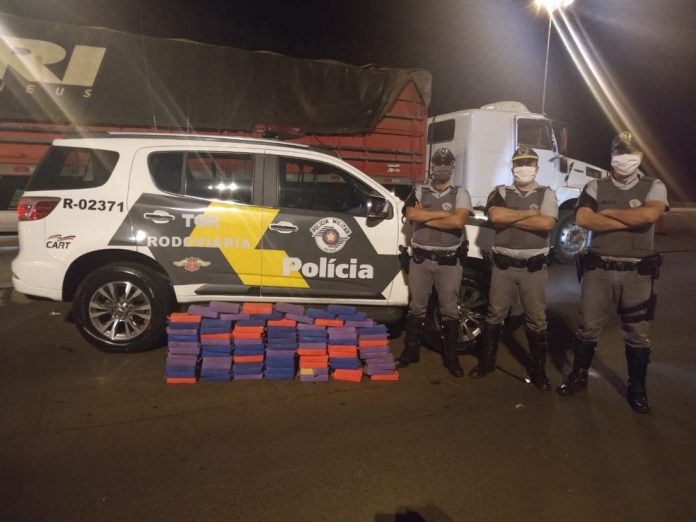 Caminhão foi abordado no quilômetro 14, em Santa Cruz do Rio Pardo (SP), e as drogas estavam em um fundo falso no veículo.