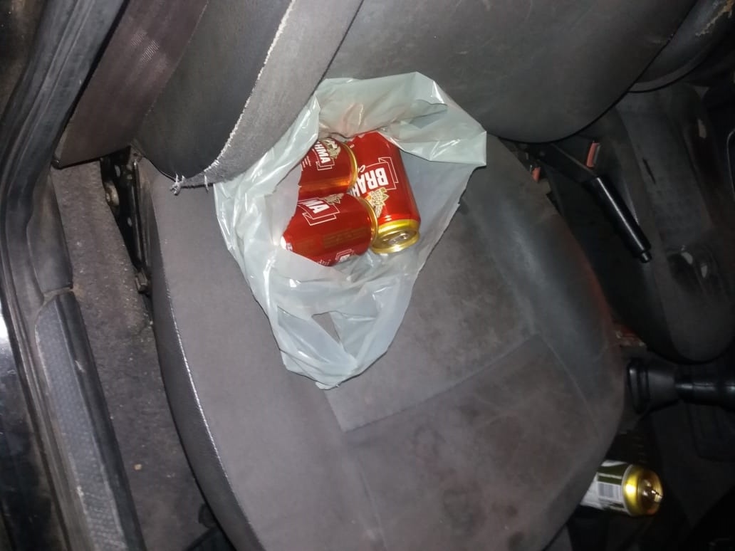 No interior do veículo foram encontradas 03 latas de cerveja cheias e uma parcialemnte consumida.