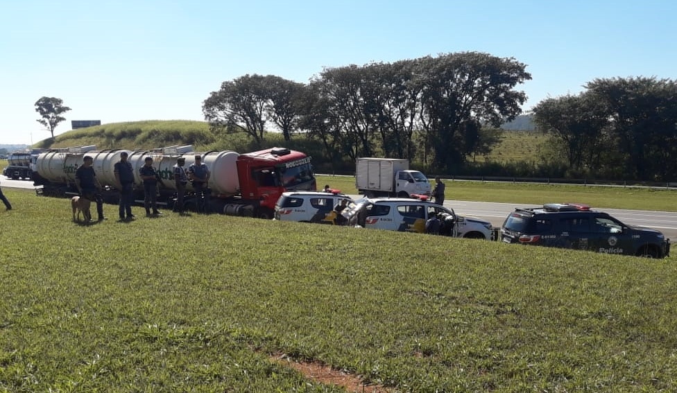 Na tarde deste sábado (04) os policiais militares sargento Camargo, cabo Neves e soldado Cristiano – equipe TOR (Tático Ostensivo Rodoviário), estavam em patrulhamento quando receberam informações via rádio sobre um veículo com insulfilme em atitude suspeita que transitava próximo a uma carreta Scania vermelha 9 eixos da empresa Rodobelo pelo km-85 da Rodovia dos Bandeirantes (SP-348). Imadiatamente a equipe se deslocou para averiguar e encontrou a carreta descrita na altura do km 80 sul, não avistando o veículo que estaria em atitude suspeita.
