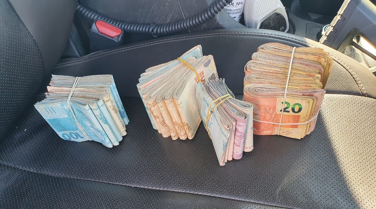 Durante a ação foi localizada a quantia de R$ 25.540,00 em duas sacolas de plástico de supermercado.