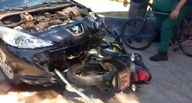 Um mototaxista de 42 anos ficou ferido após ser atingido por um carro na tarde desta quinta-feira (10), em Porto Ferreira (SP).