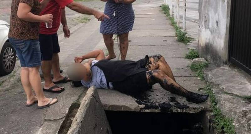 Uma controladora de acesso, de 41 anos, sofreu uma grave torção na perna depois que caiu em um bueiro em Cubatão (SP). A tampa de concreto que cobria a tubulação se rompeu enquanto a mulher caminhava pelo local e ela acabou sendo engolida pela estrutura.