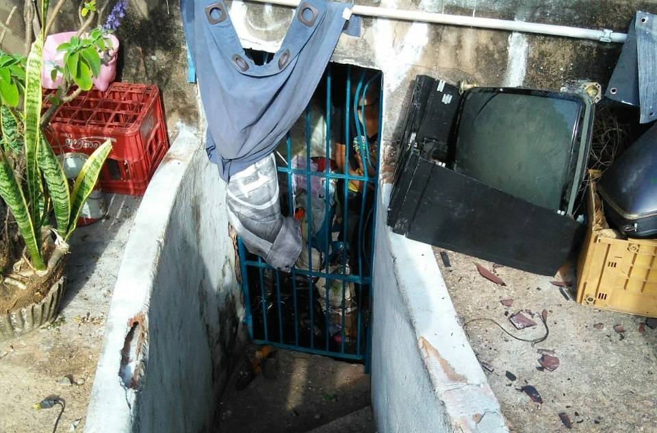 As equipes da Polícia Militar foram rapidamente até o endereço citado, onde localizaram a Vítima de 22 anos de idade, trancada em uma garagem fechada com corrente e cadeado.