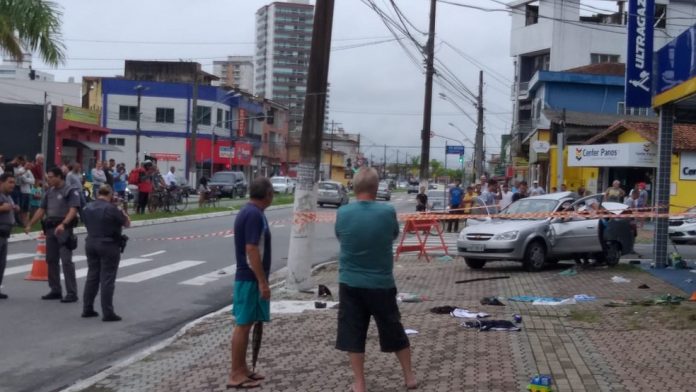 Uma mulher morreu e outras duas pessoas ficaram feridas em um acidente de trânsito no bairro Vila Caiçara de Praia Grande, no litoral de São Paulo, na manhã deste sábado (29).