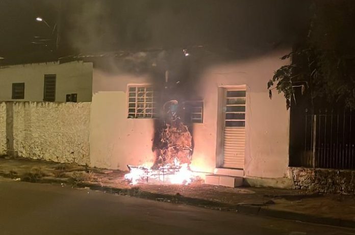 Durante as diligências o sofá em que o adolescente anteriormente estava sentado começou a pegar fogo, sendo necessário o apoio do Corpo de Bombeiros para a extinção do incêndio já que estava alastrando para o interior do imóvel abandonado. Após controlado o incêndio, o infrator recebeu voz de apreensão sendo apresentado no plantão da Central de Polícia Judiciária, onde após ser ouvido pela autoridae presente foi liberado.