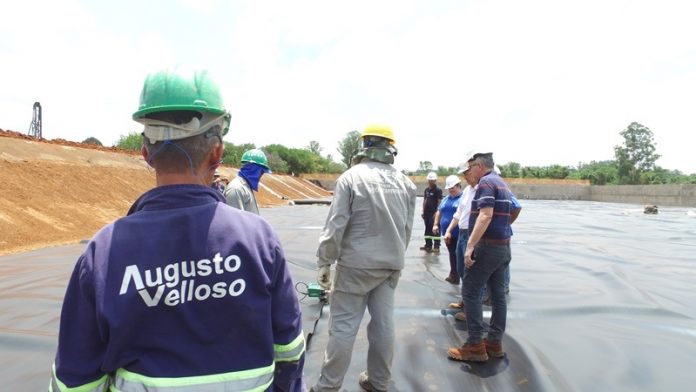 Além da implantação da manta geotêxtil, equipes da Construtora Augusto Velloso, vencedora da licitação e responsável pelo serviço, trabalham atualmente na remoção do lodo e no estaqueamento dos decantadores, que vão receber o material em fase posterior ao tratamento recebido na lagoa de aeração.