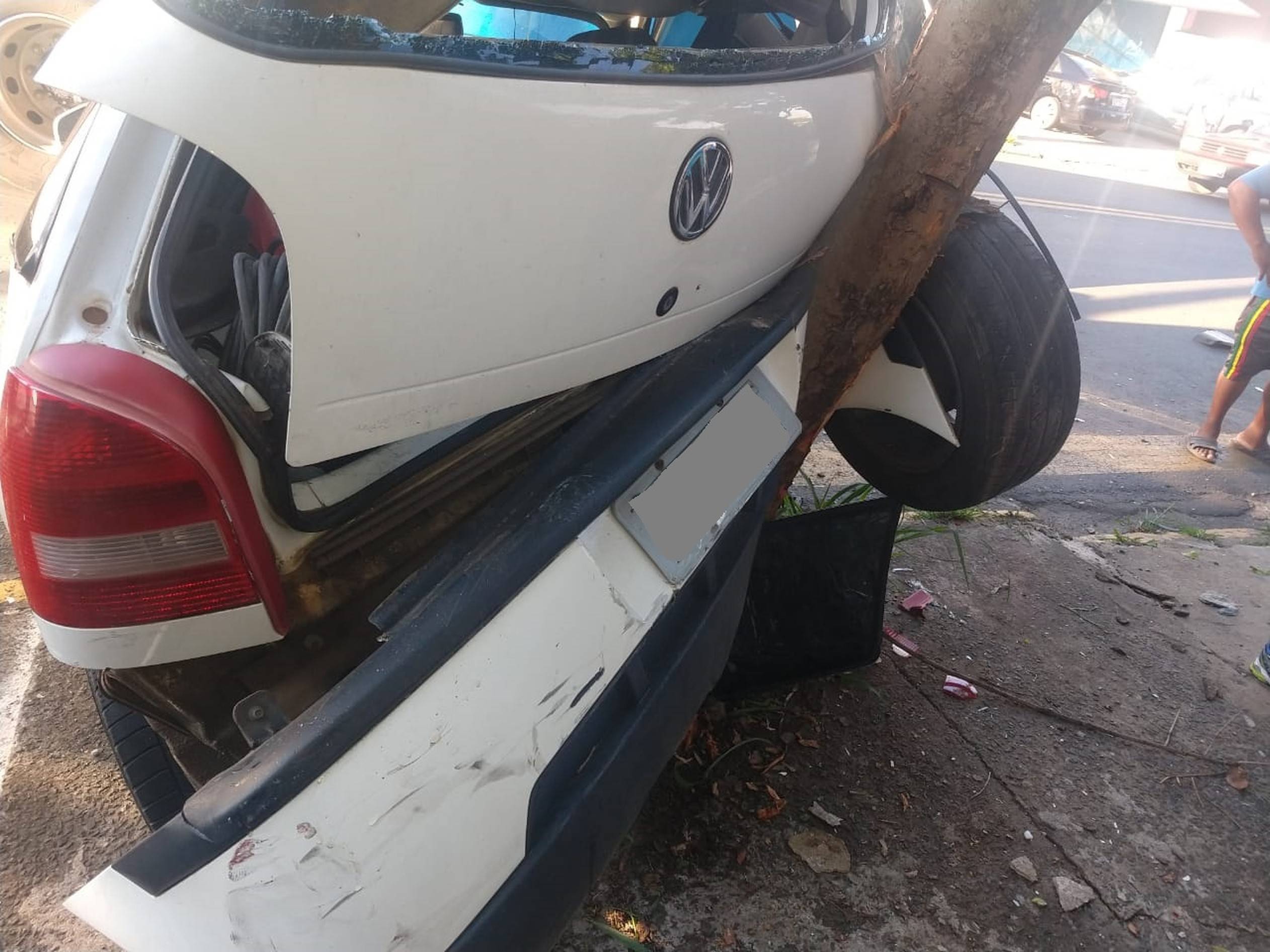 Um dos automóveis atingiu uma árvore, que teve que ser retirada pelos bombeiros. Motorista do coletivo passou mal.