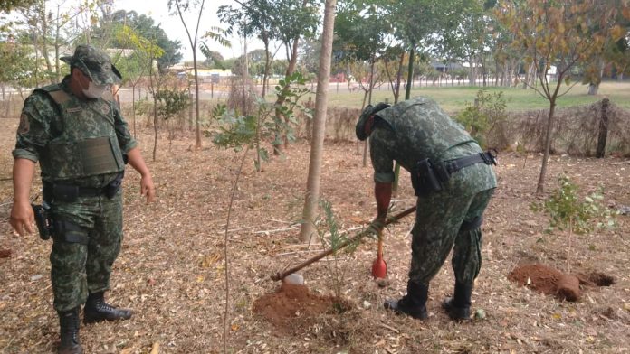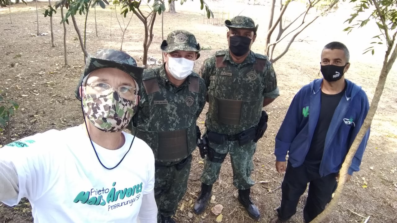 A ação foi procedida pelos integrantes do Projeto Mais Árvore e Projeto Cerrado de Emas representados por José Luiz Moura e Marcelo Eduardo Kornfeld, juntamente com a equipe do 1º Pelotão Ambiental composta pelos policiais sargento Couto e cabo Fernando.