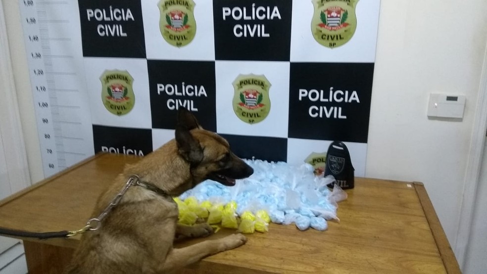 A apreensão teve o apoio da Guarda Civil Municipal e a cadela de faro Madona. Os policiais foram cumprir um mandado de busca e apreensão em uma casa no bairro Jardim Azul. O local seria um depósito de drogas de um traficante do bairro Vila Olinda.