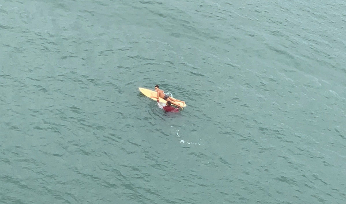 Os policiais flagraram o banhista afastado cerca de 1,5 km da costa.