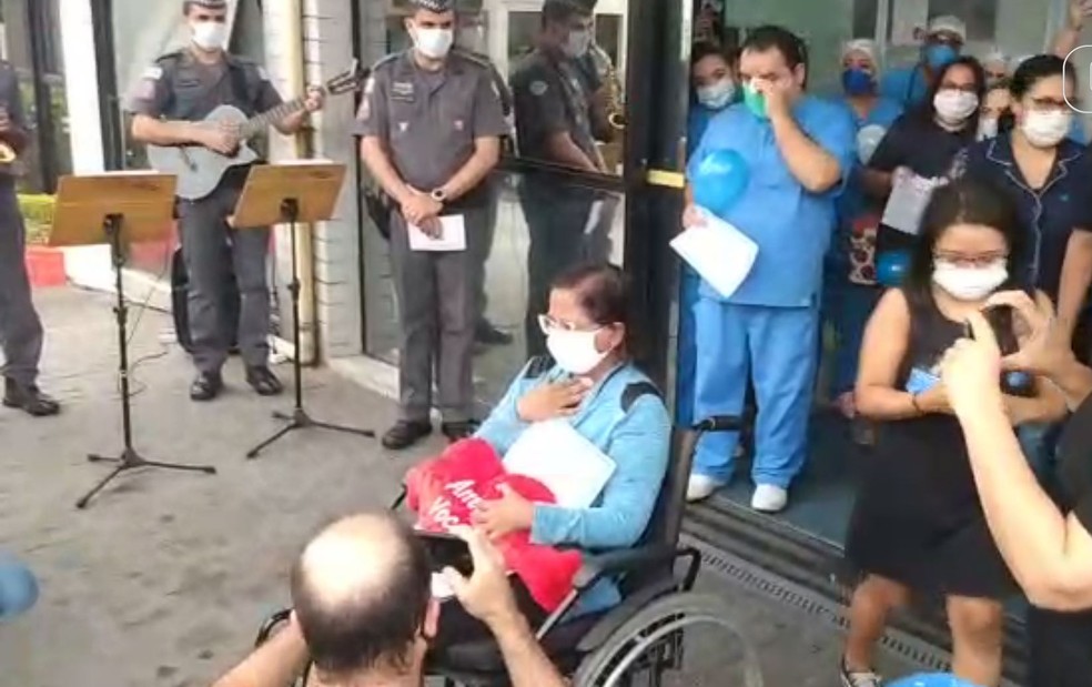 Após ficar quase três meses internada por conta da Covid-19, Maria Lucia de Souza Nascimento, de 56 anos, venceu a doença e teve alta em um hospital de Santos, no litoral de São Paulo. A saída da paciente contou com homenagem da banda da Polícia Militar e da equipe médica.