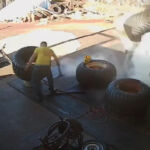 Borracheiro é jogado para alto e fica ferido após pneu explodir durante calibragem