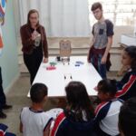 Alunos participaram de atividade com o robô Julinho, que auxilia nas aulas de matemática.