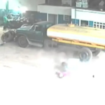 Funcionário mexia no pneu de um caminhão quando houve a explosão que o jogou longe. Vítima sofreu ferimentos na cabeça e braço, mas está...