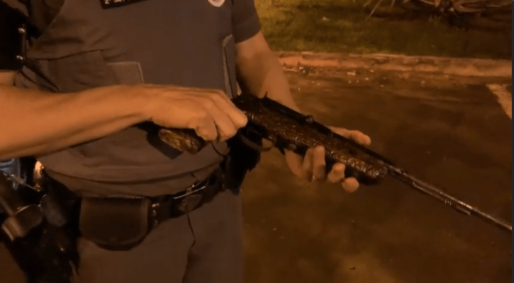 Imediatamente os policiais militares, sob o comando do sargento Ricardo, iniciaram diligências, quando a equipe de ROCAM acabou visualizando o veículo em que ele estava, realizando abordagem. Inicialmente ele apresentou um nome falso, mas depois acabou confessando que era ele mesmo, inclusive levou os policiais até sua residência, onde foi apreendida uma arma cal. 38 de fabricação caseira.