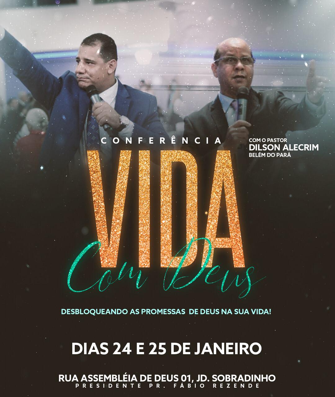 O pastor Dilson Alecrim – Belém do Pará, ministrará a grande Conferência “Vida com Deus”, que acontecerá durante o “Janeiro Profético” nos dias 24 e 25 de janeiro, na cidade de Araras (SP) , no templo sede da Igreja Assembleia de Deus Ministério de Madureira.