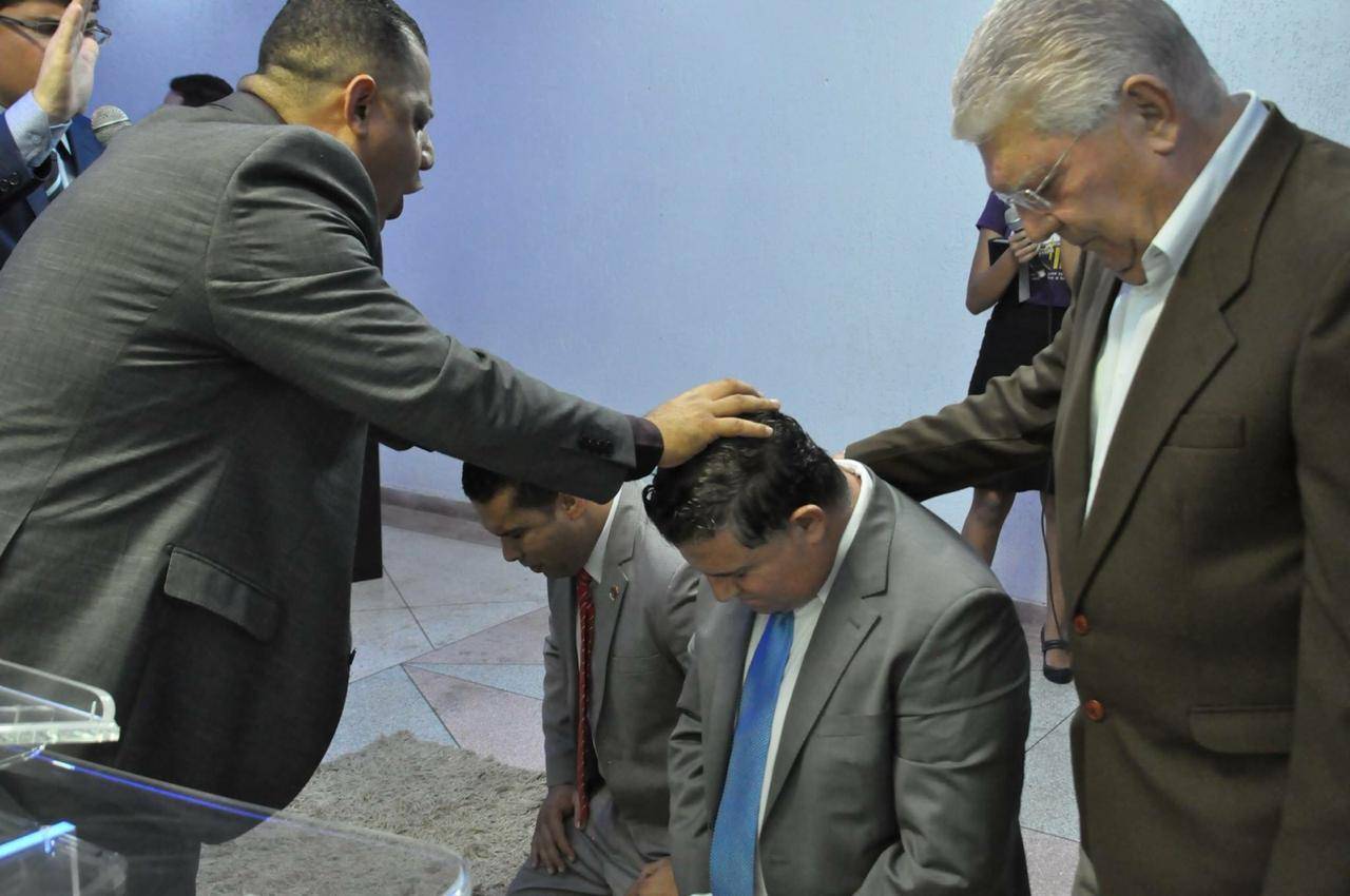 Eles estiveram acompanhado do vereador Rodrigo Soares, que já membro da igreja, onde receberam oração de toda igreja.